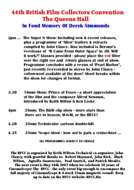 The film shows went down very well so for those that missed the day here is the programme of events...